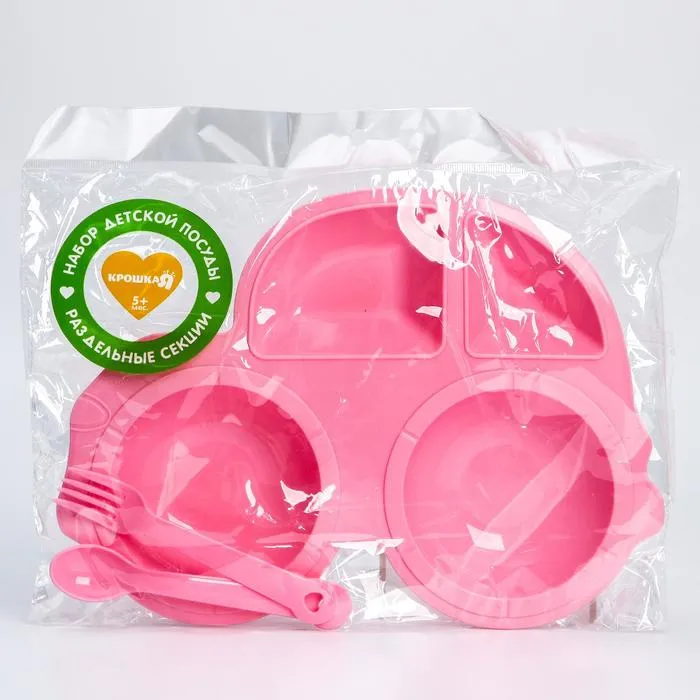 Тарелка детская с вилкой и ложкой, МИКС — Характеристики