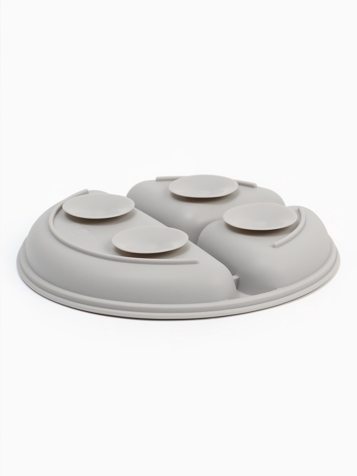 Изделие изготовлено из пищевого силикона — гипоаллергенного, гибкого и прочного материала. Тарелка не содержит бисфенол А (BPA free). Её можно использовать в микроволновой печи и посудомоечной машине. Благодаря износостойкости она устойчива к падениям и деформациям, не впитывает запахи и не окрашивается от пищи. Мягкий материал безопасен для ребёнка, а отсутствие острых краёв исключает риск порезов.