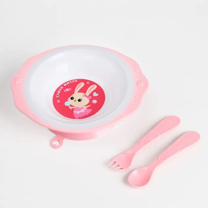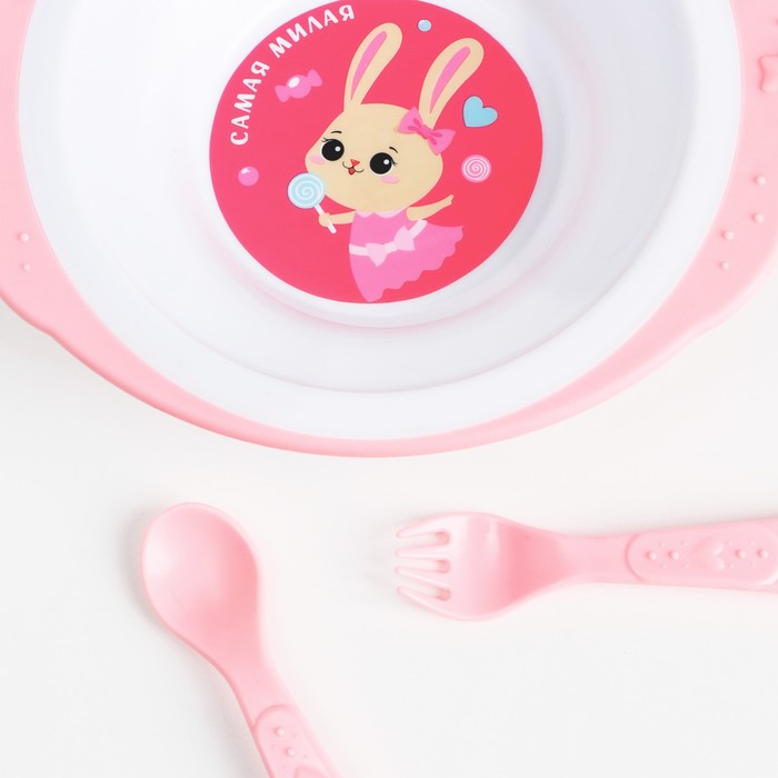 Тарелка детская «Зайка Полли», на присоске 250 мл, в наборе вилка, ложка, Крошка Я — Характеристики