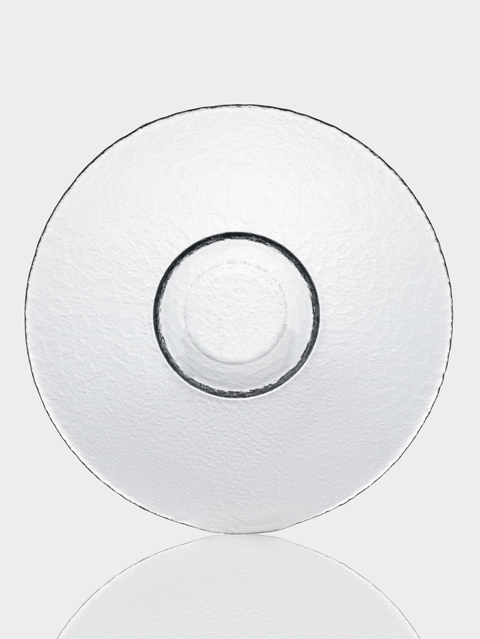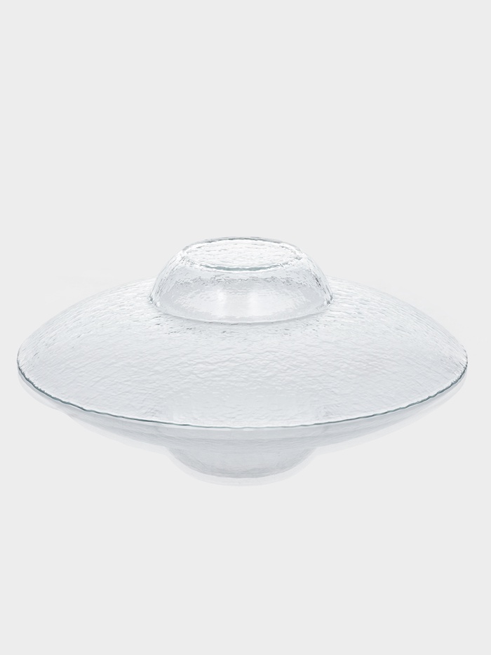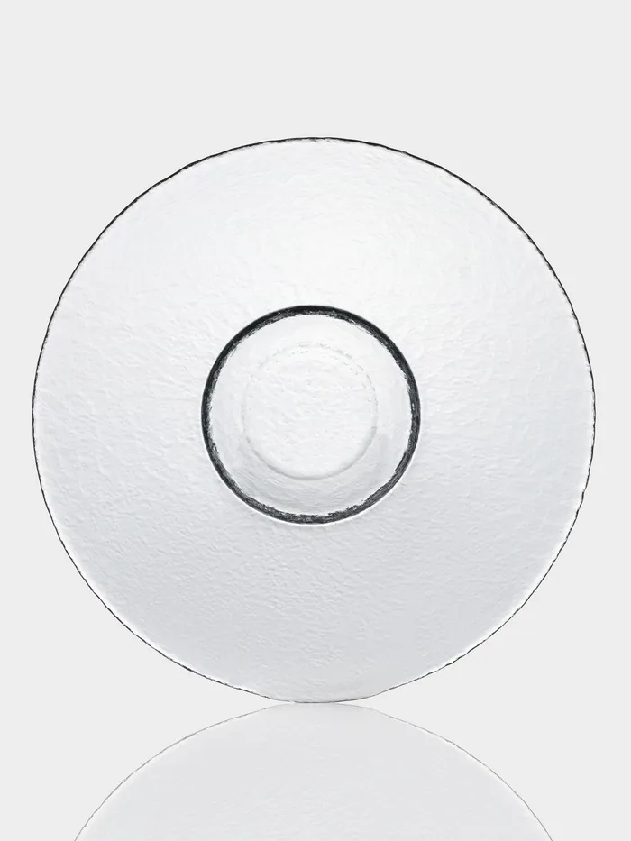 - Прозрачное рельефное стекло: текстура создаёт лёгкую игру света, не отвлекая внимание от содержимого тарелки.