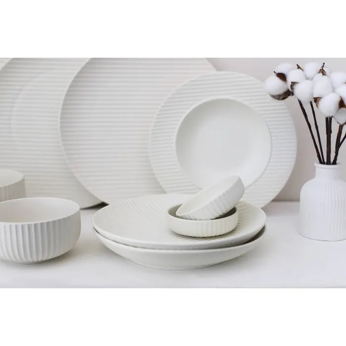 Вся посуда изготовлена из качественного фарфора, отличается прочностью и устойчивостью к резким перепадам температур. Посуда Line подходит как для праздничной, так и для ежедневной сервировки.