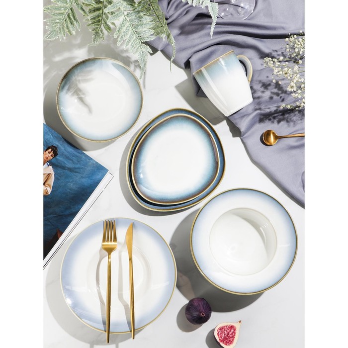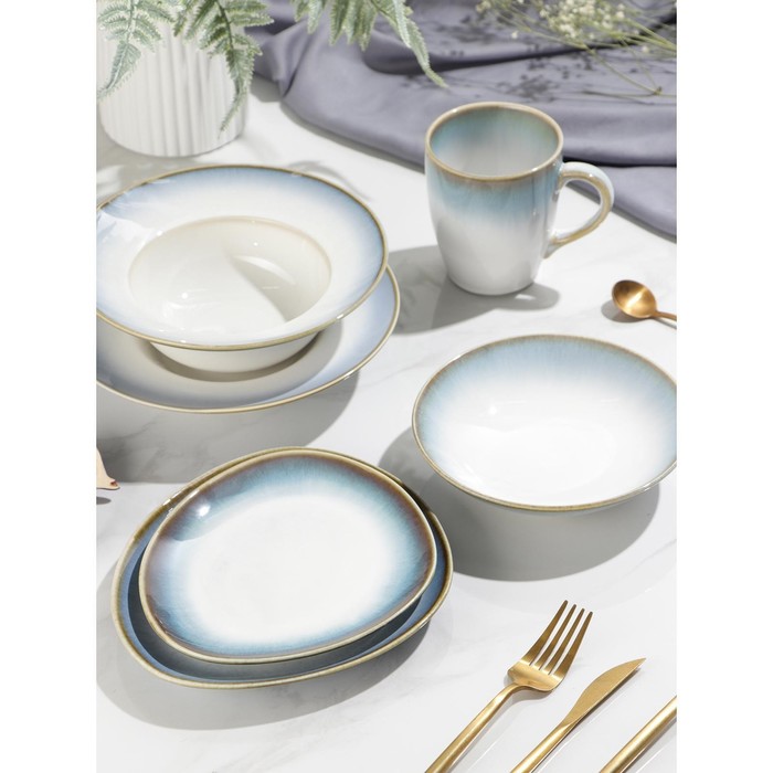 Нежная серия посуды «Пэвэти» от торговой марки Magistro влюбляет в себя с первого взгляда. Изделия выполнены в небесных оттенках с бежевой окантовкой, что придаёт им незабываемый и утончённый вид.
