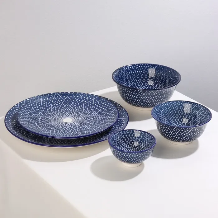Серия посуды Доляна «Бодом» создана для идеальной сервировки вашего стола. Глубокий и насыщенный синий цвет в сочетании с белым орнаментом придают изделиям особенный вид. Посуда изготовлена из прочной керамики, устойчива к повреждениям и перепадам температур.