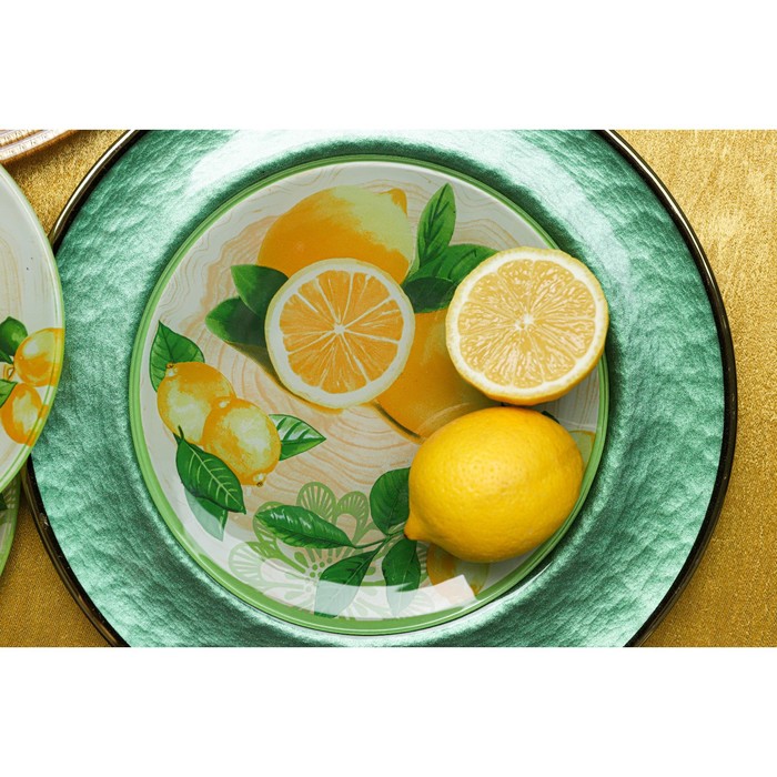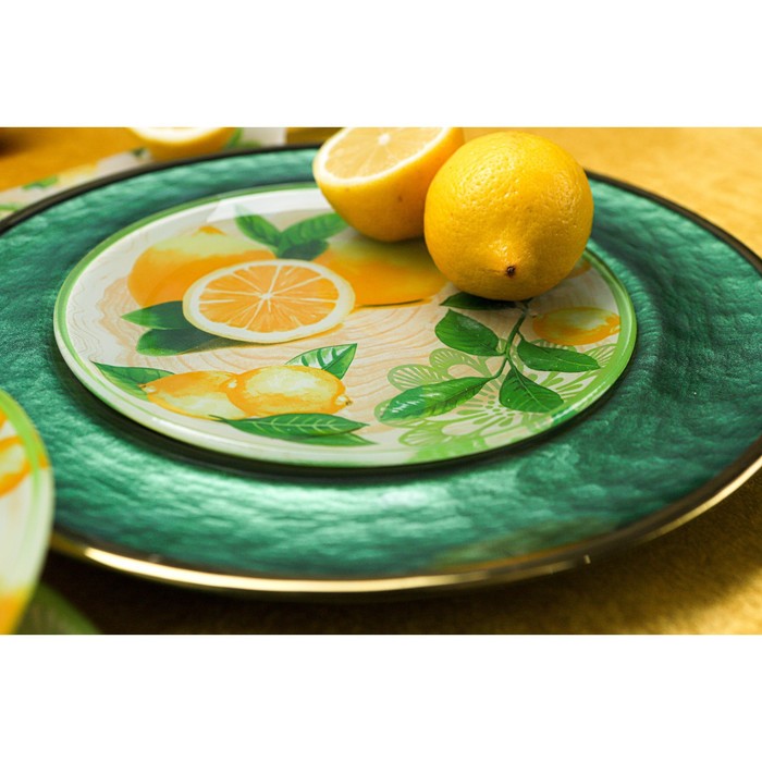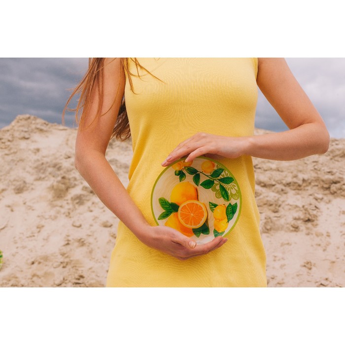 Тарелка изготовлена из прочного и долговечного стекла, которое легко моется и не теряет своего вида даже после многократного использования.Такая тарелка прекрасно подойдет для подачи фруктов, десертов, салатов и других легких блюд. Она также может использоваться как самостоятельный элемент декора, украшая интерьер вашей кухни или столовой. Благодаря своему оригинальному дизайну, тарелка с лимоном станет отличным подарком для любителей сочных и ярких акцентов в интерьере.