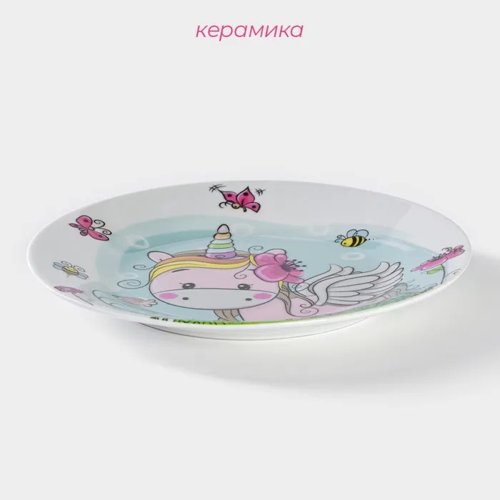 Тарелка Доляна «Единорожка», d=17.5 см, керамика, белая — Характеристики