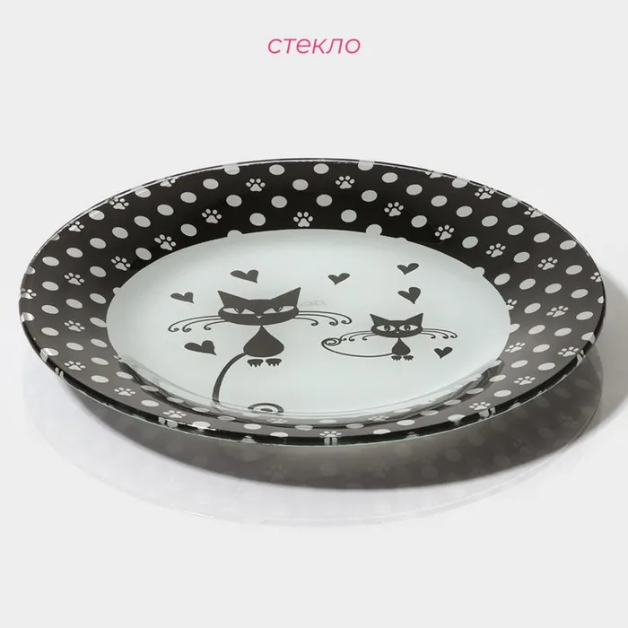 Тарелка Доляна «Котики», d=18 см, стекло, белая, чёрная — Характеристики