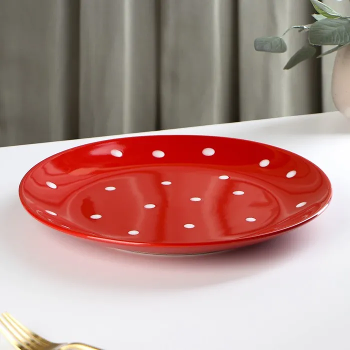 Тарелка Доляна «Красный горох», d=27 см, керамика, красная — Характеристики