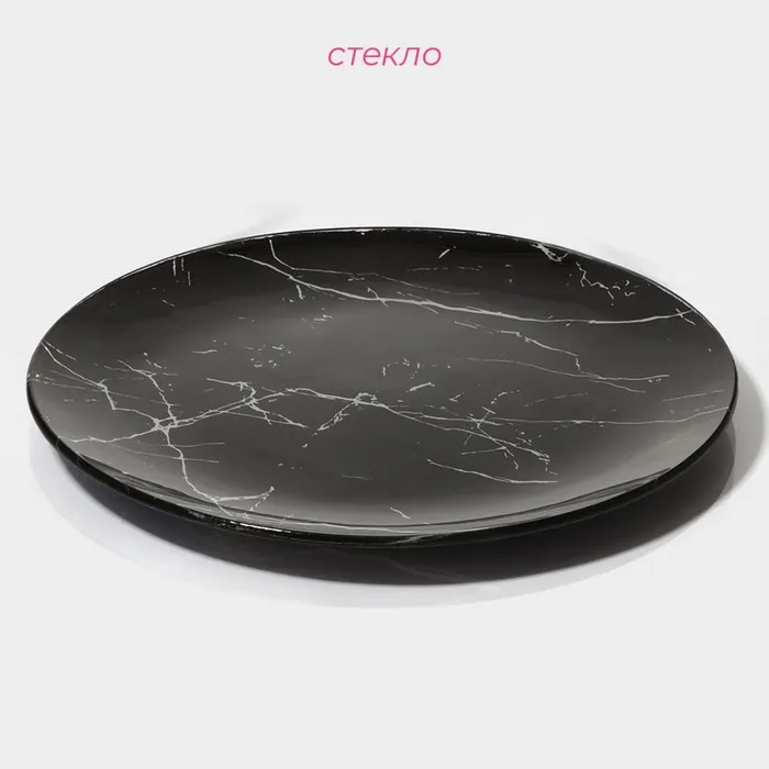 Тарелка Доляна «Марбл чёрный», d=20 см, стекло, чёрная — Характеристики