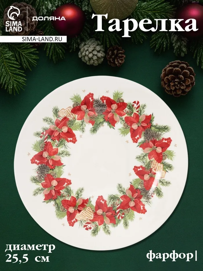 Тарелка Доляна «Новогоднее настроение», d=25.5 см, фарфор, белая — Характеристики