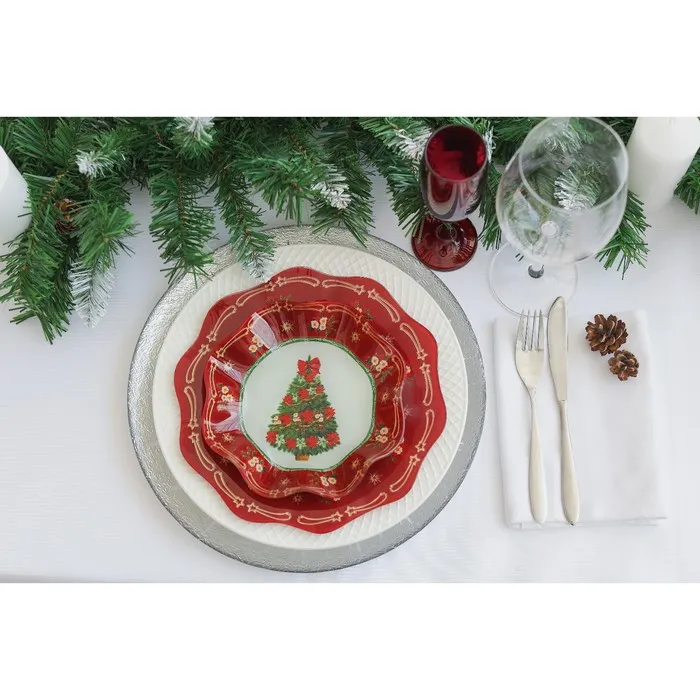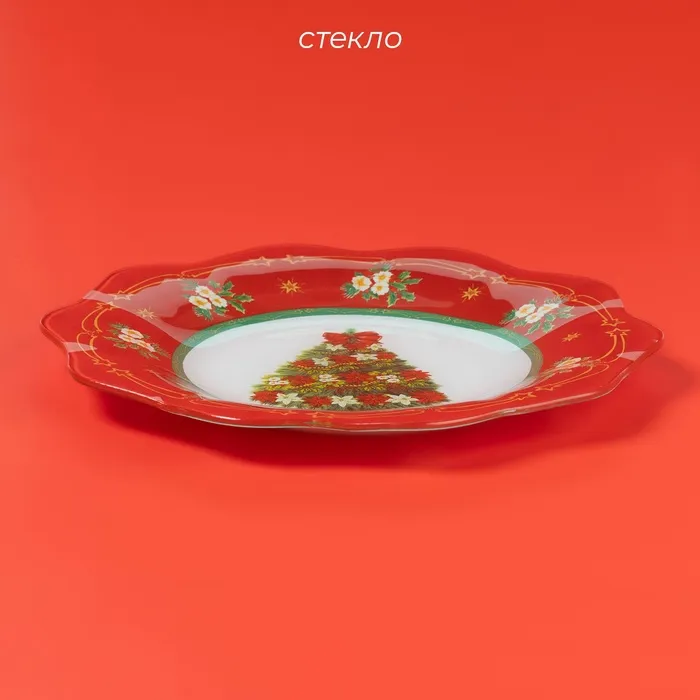 Тарелка Доляна «Новогодняя ель», d=25 см, стекло, красная — Характеристики