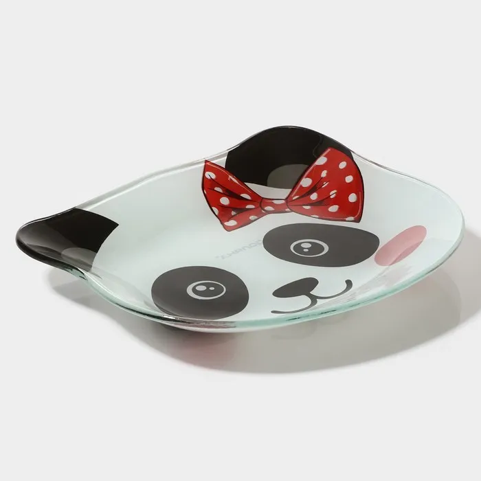 Тарелка Доляна «Панда девочка», 14.9×12.9 см, тстекло, белая — Характеристики