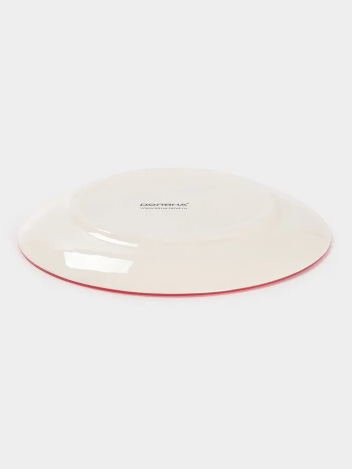 Яркая керамическая тарелка с красными полосками станет выразительным акцентом вашей сервировки. Ее стандартный диаметр 19,5 см удобен для повседневных трапез и праздничных застолий.