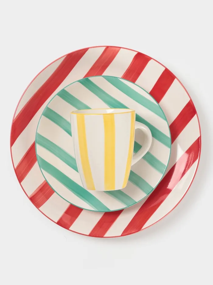 Эта тарелка с полосатым узором создана методом деколи - рисунок не стирается и не выцветает со временем. Её нейтрально-яркий дизайн впишется в любую кухонную атмосферу.