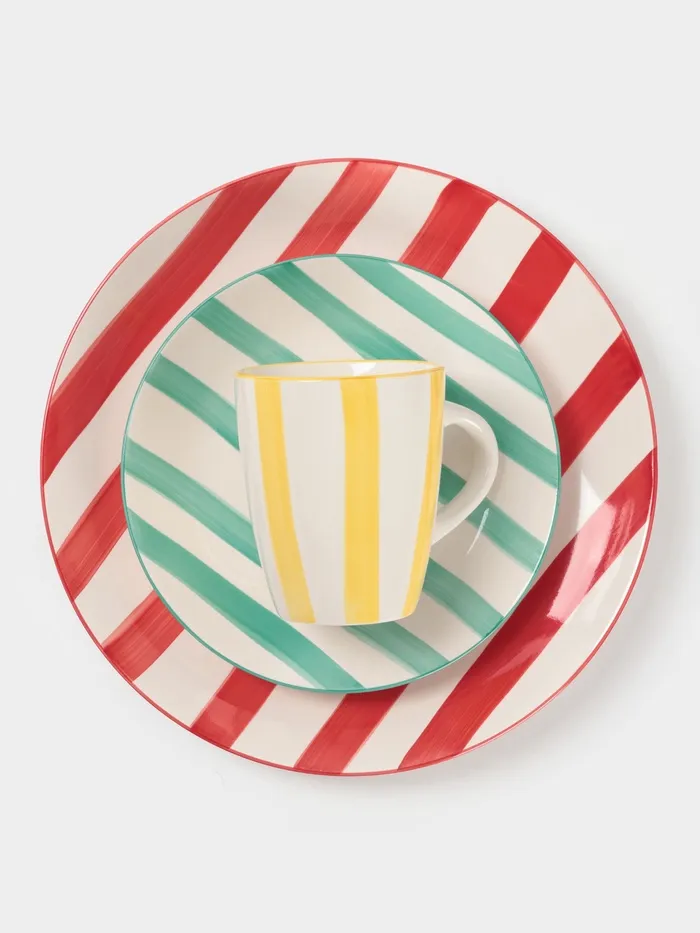 Яркие полосы создают динамичный, но сбалансированный дизайн, который оживит любую сервировку. Гладкая поверхность из прочной керамики устойчива к царапинам, сохраняя привлекательный вид.
