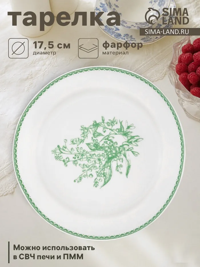 Тарелка Дулевский фарфор «Райские ландыши», d=17.5 см, белая — Характеристики