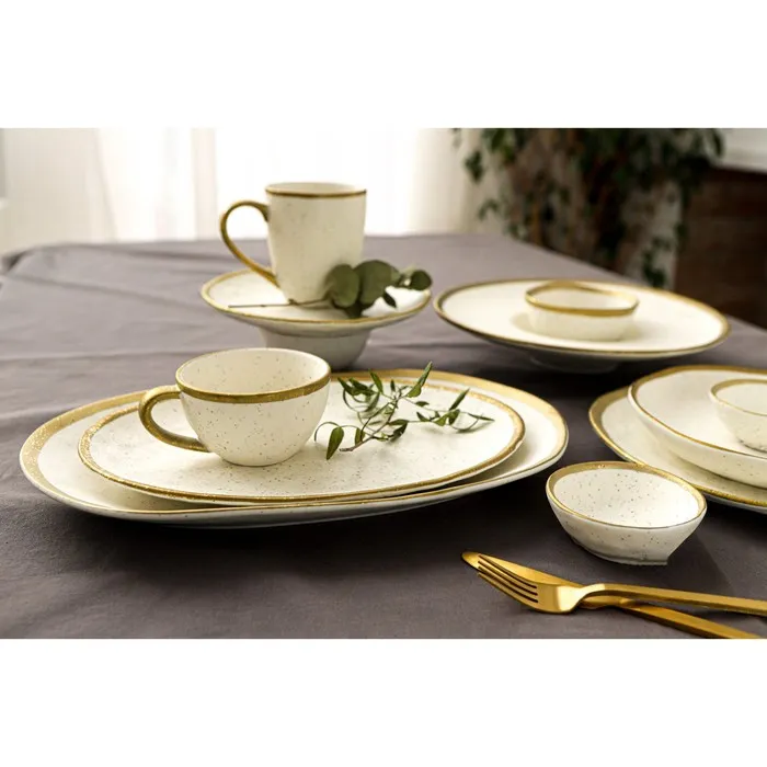 Посуда серии Magistro Poursephona — это современная фарфоровая посуда. В оформлении серии превалируют два цвета – бежевый оттенок фарфора и роскошное золото в виде широкой окантовки предметов. Идеально подходит как для формального обеда, так и для торжеств по особым случаям. Лаконичные формы, золотая окантовка, разноцветные вкрапления придают изделиям из фарфора одновременно необычный и современный вид.