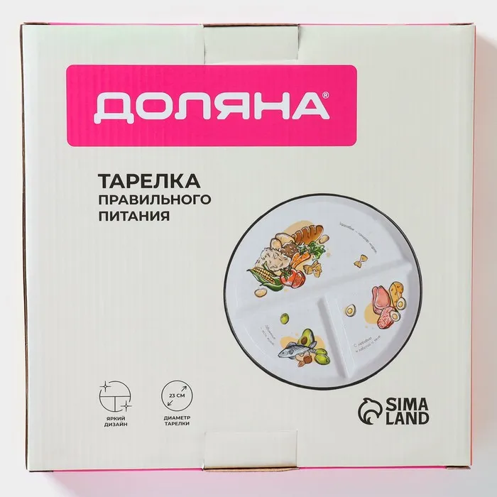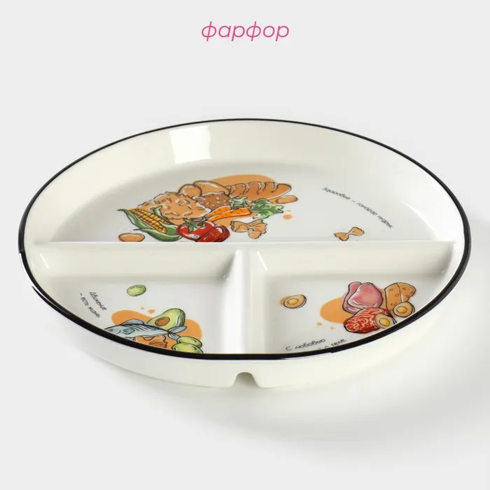 Тарелка фарфоровая для правильного питания Доляна, d=23 см — Характеристики