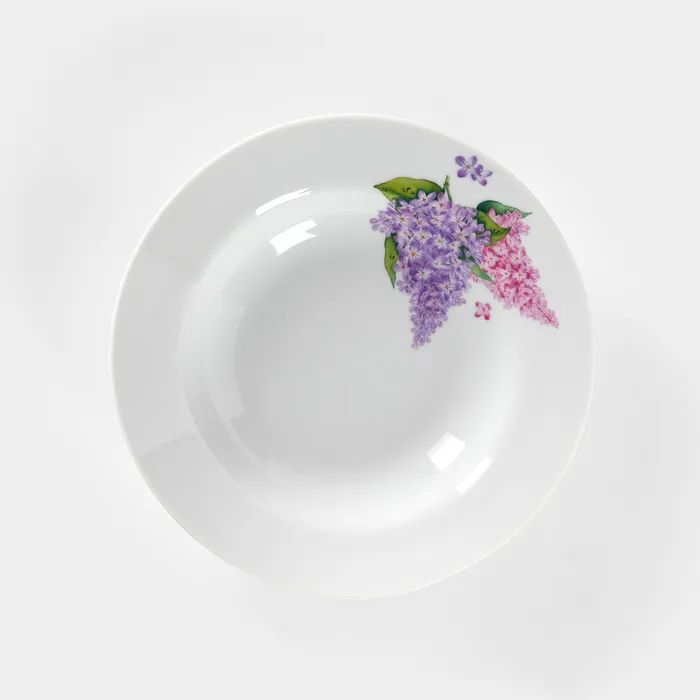 Тарелка фарфоровая глубокая «Сирень», 250 мл, d=20 см, белая — Характеристики