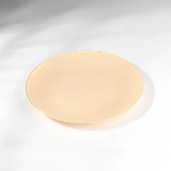 - Плоская круглая форма с аккуратным ободком удерживает соусы и гарниры в пределах тарелки.