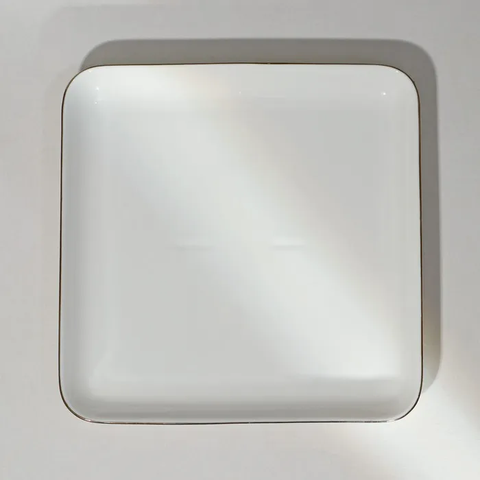 Лаконичность и изящность форм сочетаются в особой коллекции классической посуды «Золотая линия». Белоснежная посуда в минималистическом стиле имеет отличительную особенность – каждое изделие имеет золотую окантовку.