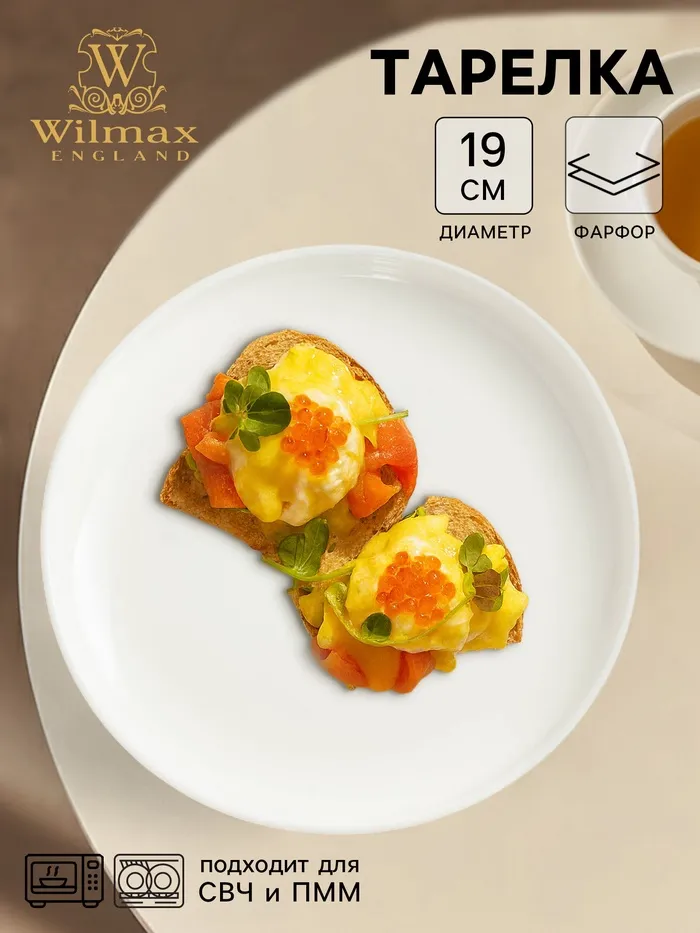Тарелка фарфоровая Wilmax, d=19 см, цвет белый — Характеристики