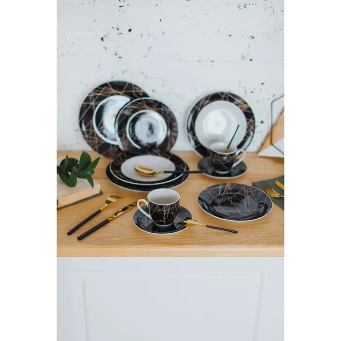 Необычная серия посуды из керамики Доляна «Кассиопея» точно удивит ваших близких за праздничным столом! Необычный дизайн, тонкие линии, насыщенный чёрный цвет придают изделиям особенный вид. Посуда из керамики обладает прочностью и выдерживает резкие перепады температур.