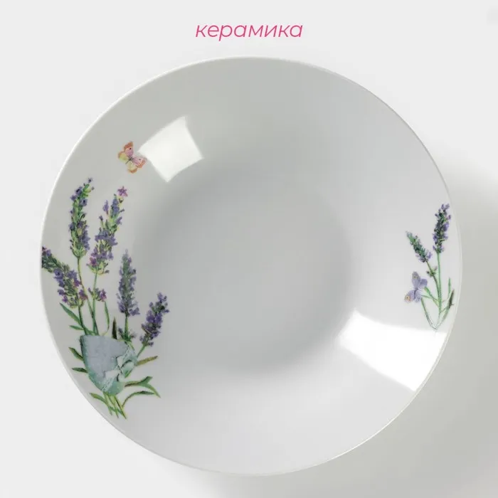 Тарелка глубокая Доляна «Лаванда», 600 мл, d=20.5 см, керамика, белая — Характеристики