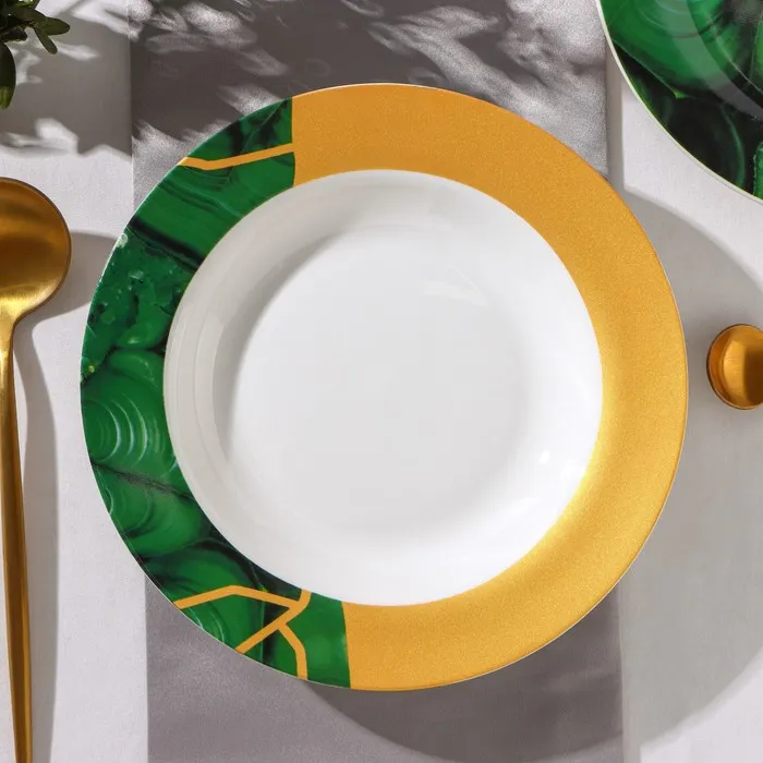 Тарелка глубокая Доляна «Малахитовая шкатулка», 340 мл, d=20 см, фарфор — Характеристики