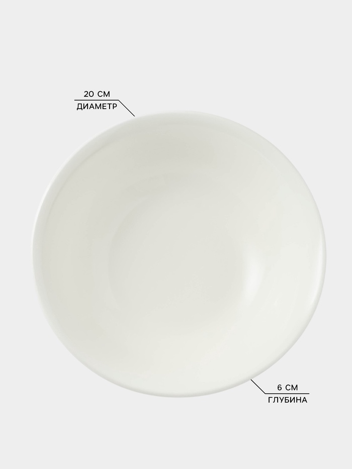 Тарелка глубокая Доляна White Label, 950 мл, d=20 см, фарфор, белая — Характеристики