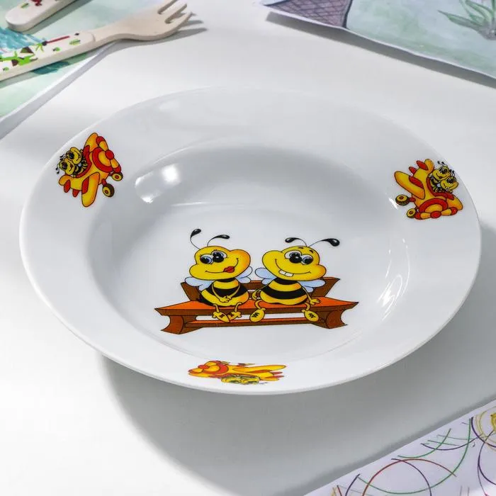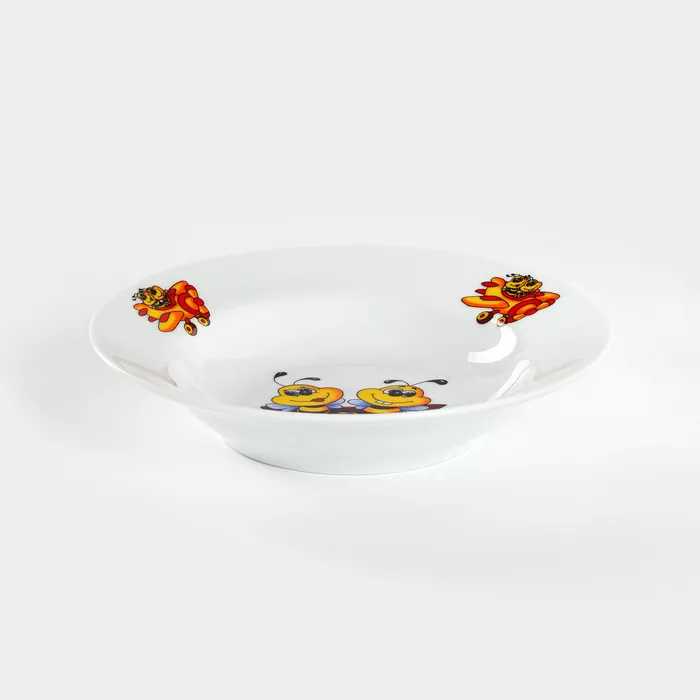 Тарелка глубокая фарфоровая «Пчёлы», 250 мл, d=20 см, рисунок микс, цвет белый — Характеристики