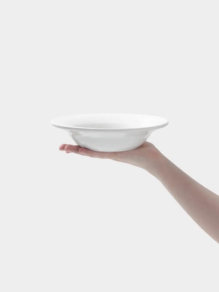 Универсальная глубокая тарелка из фарфора с объёмом 550 мл и диаметром 20,4 см подойдёт для подачи горячих блюд дома и в кафе. Благодаря гладкой белой поверхности она сохраняет естественный цвет и текстуру продуктов, создавая аккуратный и простой стиль сервировки.