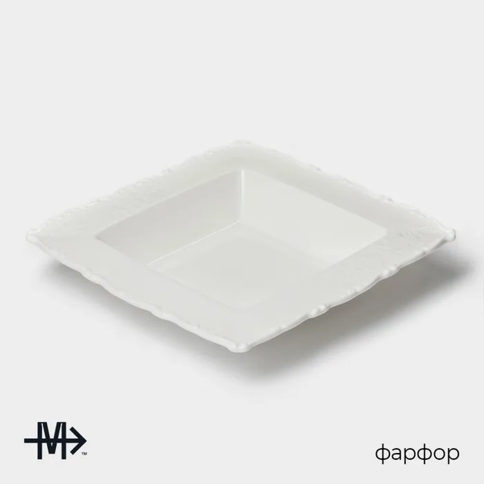 Тарелка глубокая Magistro Kingdom, 340 мл, 22×4 см, квадратная, фарфор, белая — Характеристики
