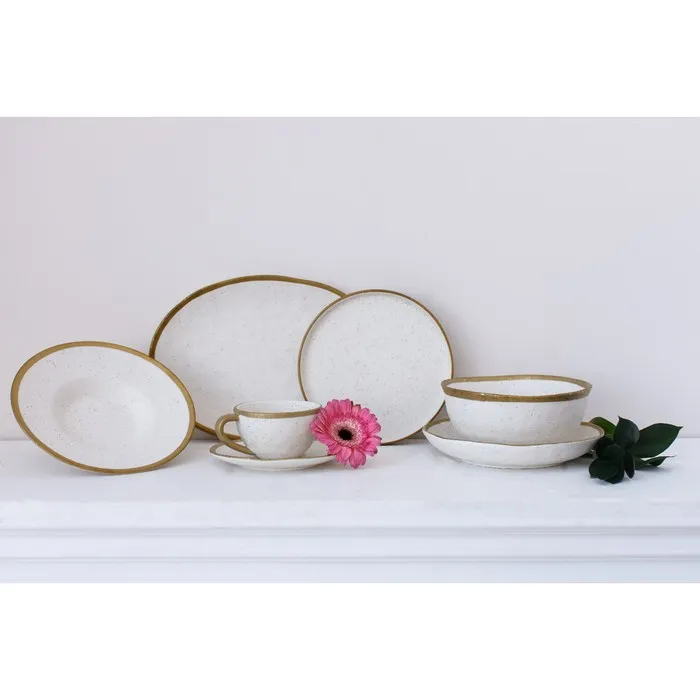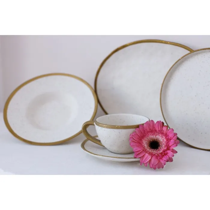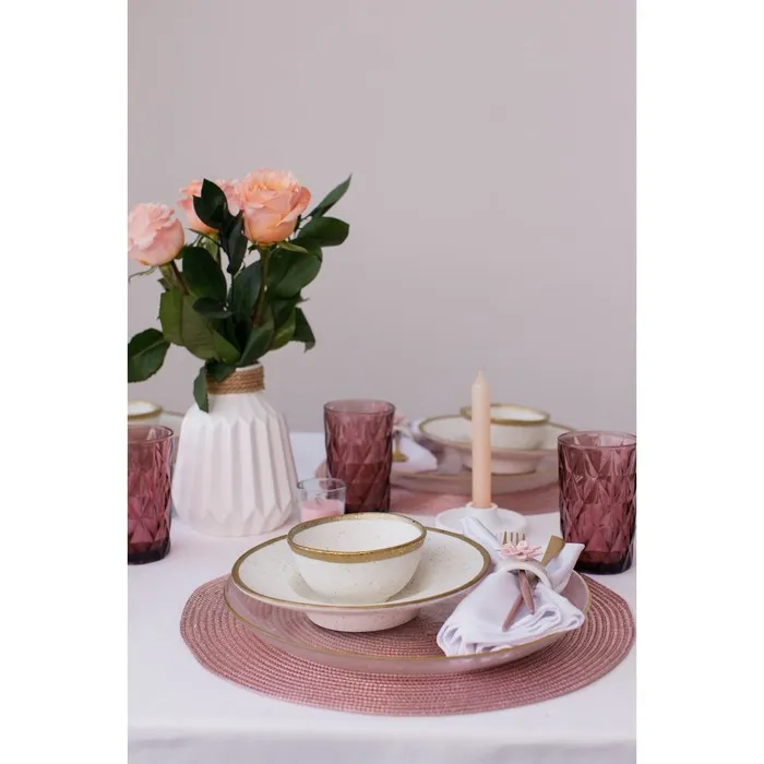 Посуда серии Magistro Poursephona — это современная фарфоровая посуда. В оформлении серии превалируют два цвета – бежевый оттенок фарфора и роскошное золото в виде широкой окантовки предметов. Идеально подходит как для формального обеда, так и для торжеств по особым случаям. Лаконичные формы, золотая окантовка, разноцветные вкрапления придают изделиям из фарфора одновременно необычный и современный вид.