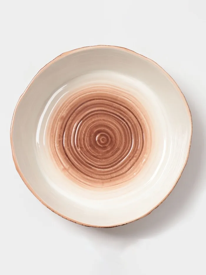Глубокая фарфоровая тарелка с декором под дерево — идеальная посуда для сытных обедов. Диаметр 23,5 см и объем 1,95 л удобны для подачи супов, пасты или рагу. Натуральный коричневый цвет и текстура дерева создают уютную атмосферу за столом.