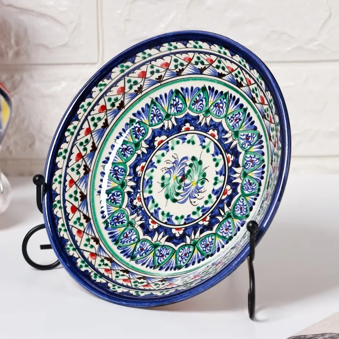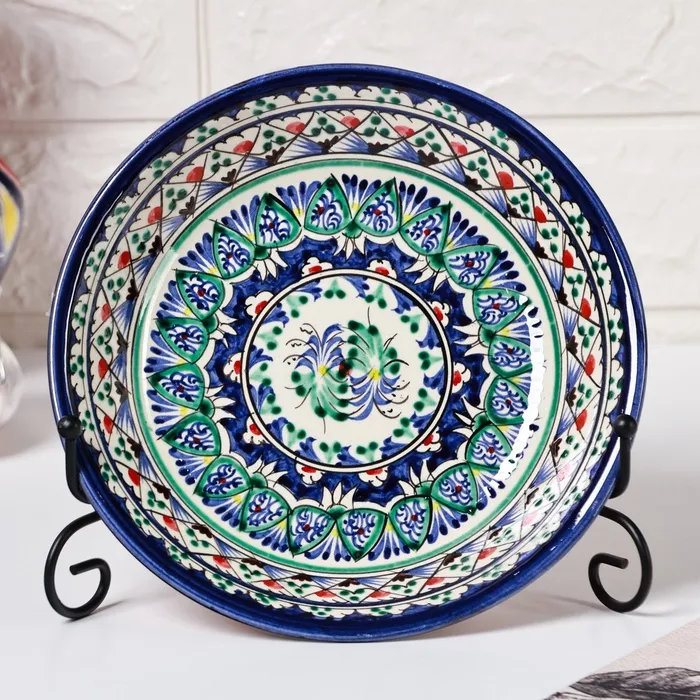Тарелка глубокая Риштанская Керамика «Узоры», d=20 см, керамика, синяя — Характеристики