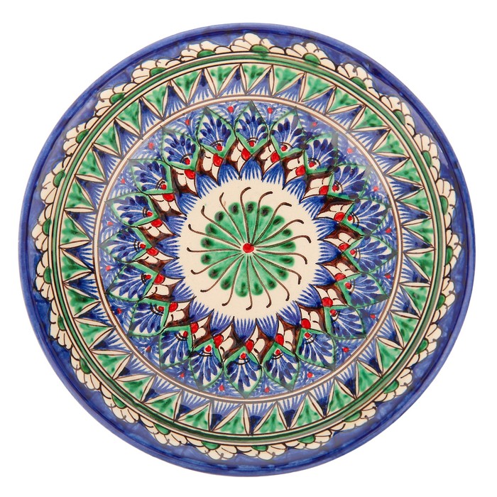 Тарелка глубокая Риштанская Керамика «Узоры», d=20 см, керамика, синяя, зелёная — Характеристики