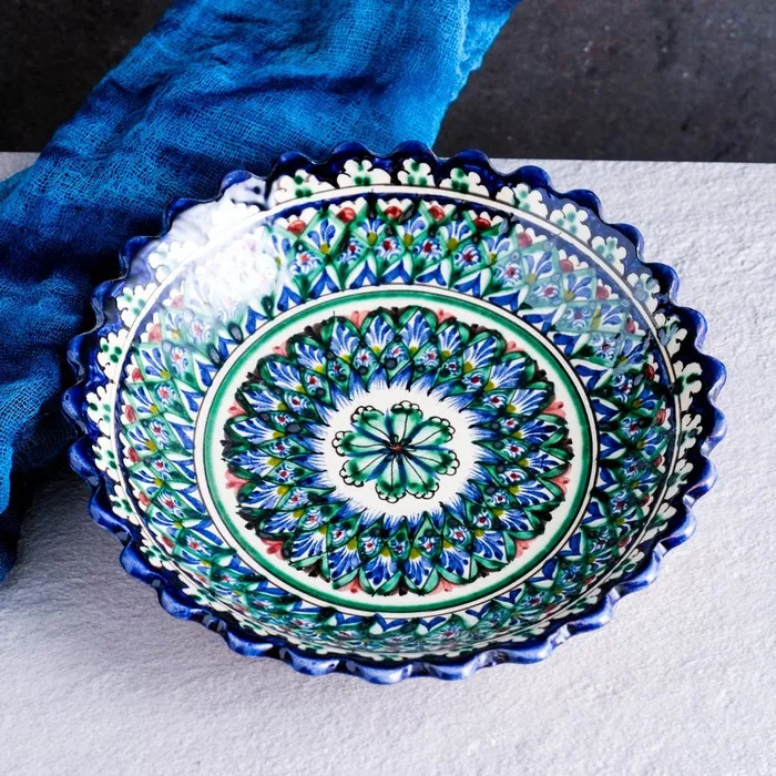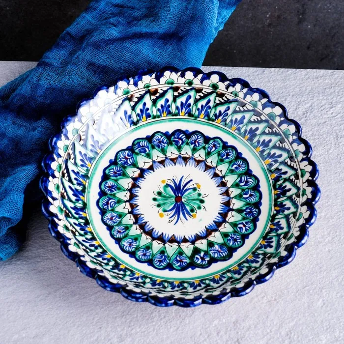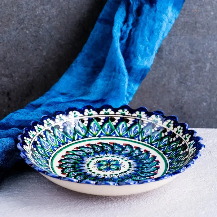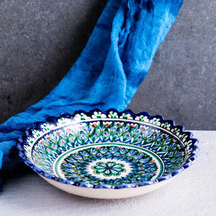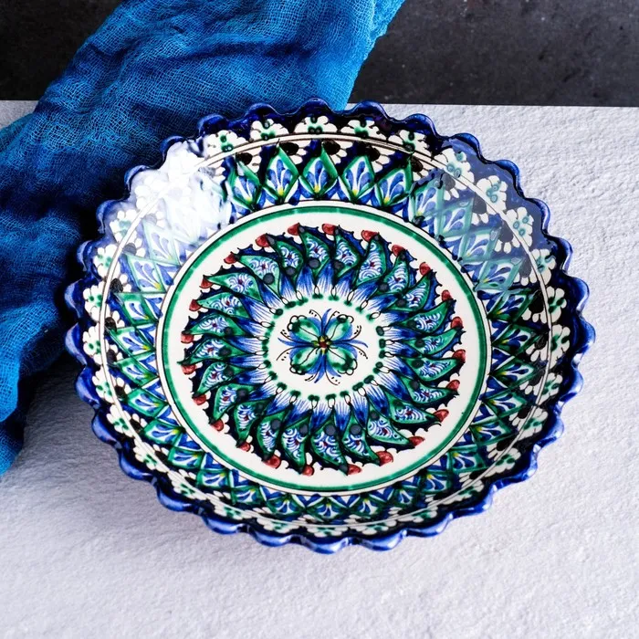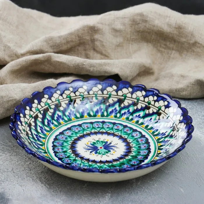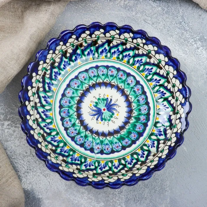 Тарелка глубокая Риштанская Керамика «Узоры», d=20 см, керамика, узор микс, синяя — Характеристики