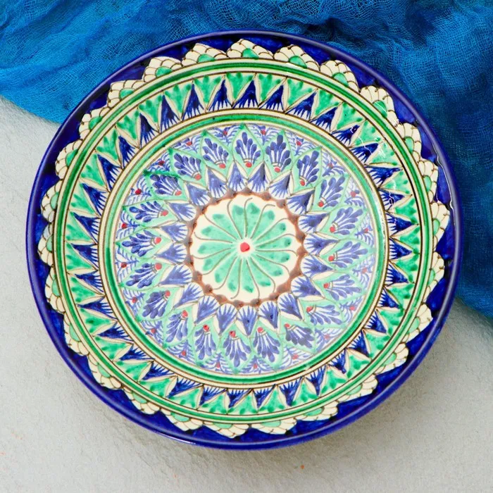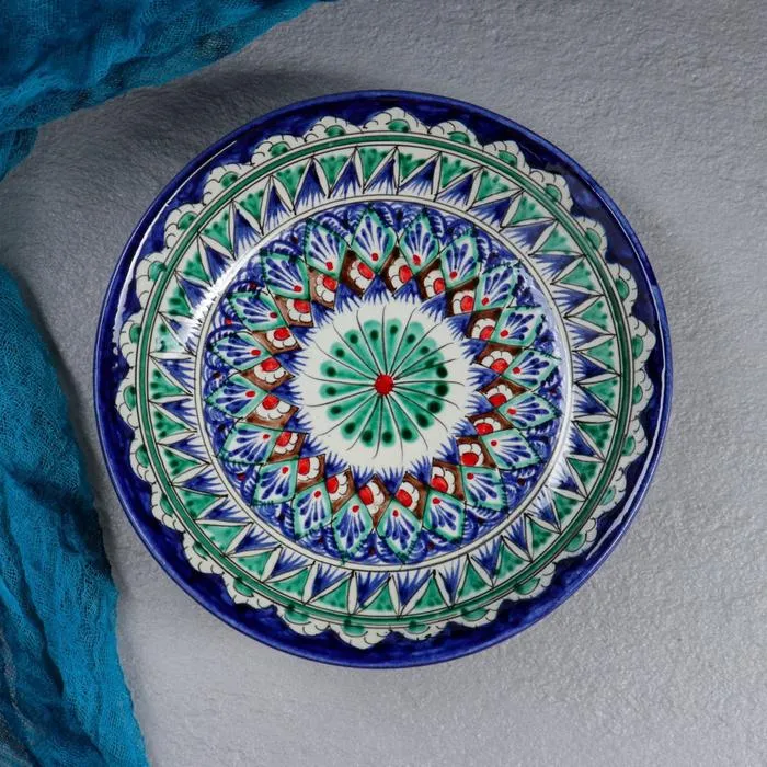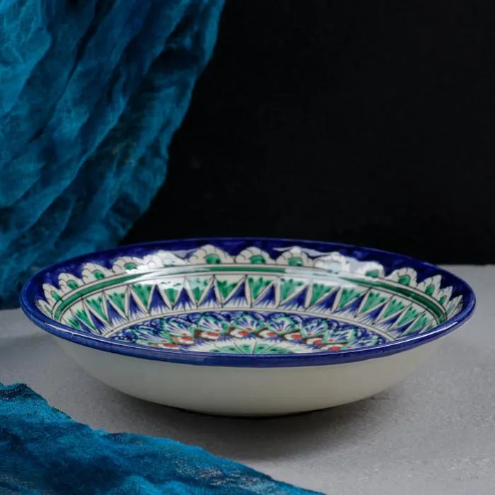 Тарелка глубокая Риштанская Керамика «Узоры», d=20 см, узор микс, керамика, синяя, зелёная — Характеристики