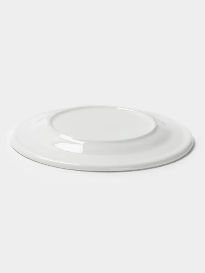 Белая тарелка с бортиком из фарфора впишется в любой стиль сервировки, от домашнего до профессионального.