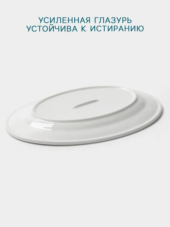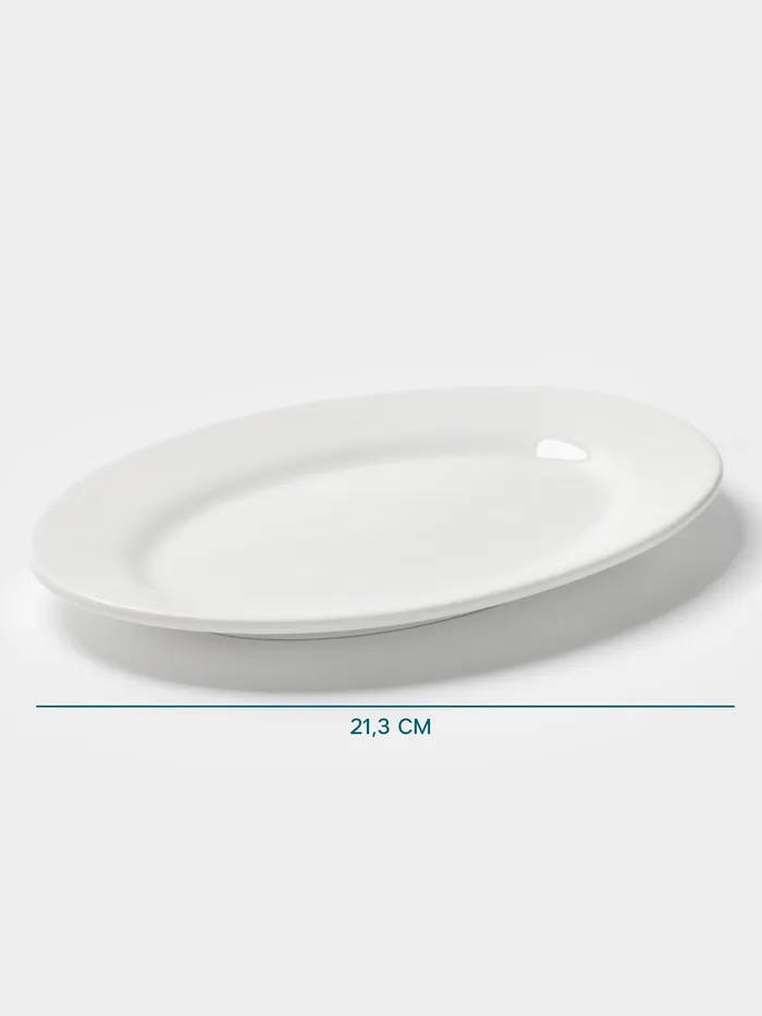 Изящная овальная форма и белоснежный цвет придают тарелке универсальность, делая её подходящей для любого случая – от повседневных трапез до праздничных ужинов. Изготовленная из высококачественного фарфора, она обладает гладкой текстурой и отсутствием матовой поверхности, что обеспечивает приятное тактильное ощущение.