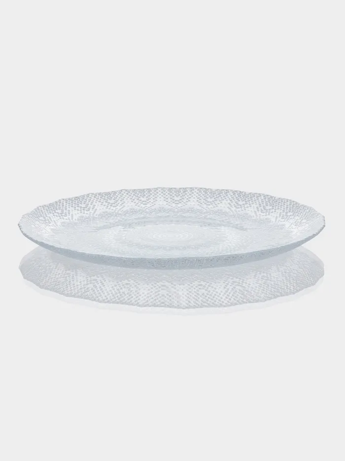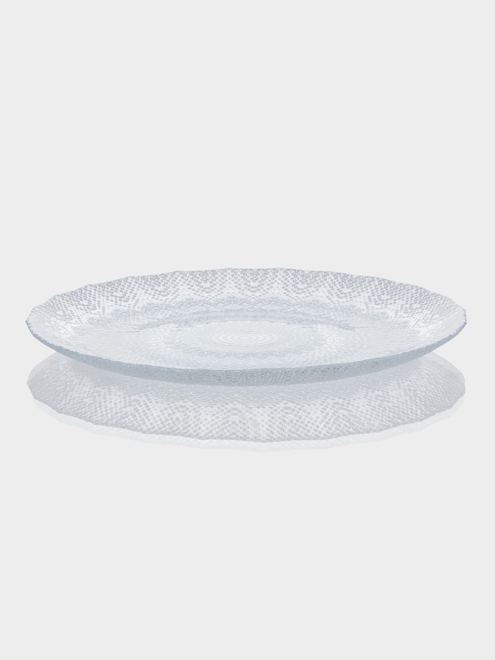 - Прозрачное стекло с рельефом: текстура добавляет тактильный интерес и визуальную глубину, не отвлекая от подачи блюда.