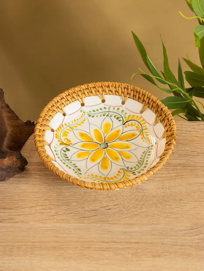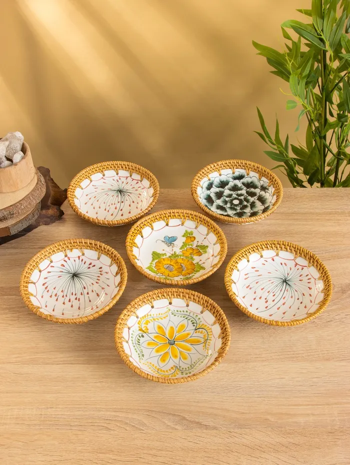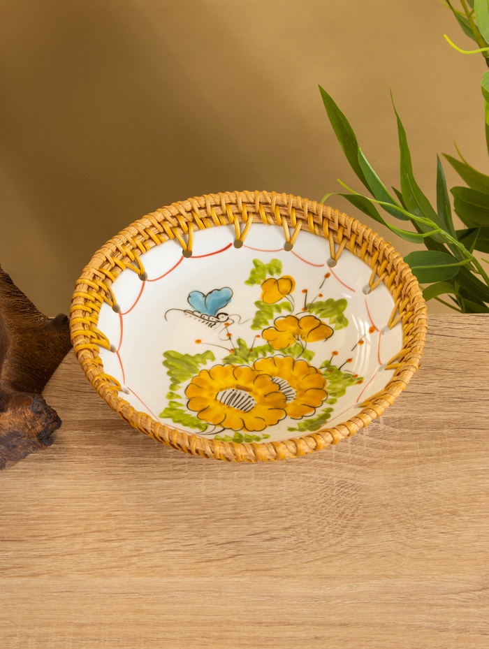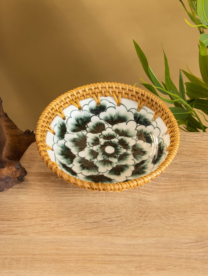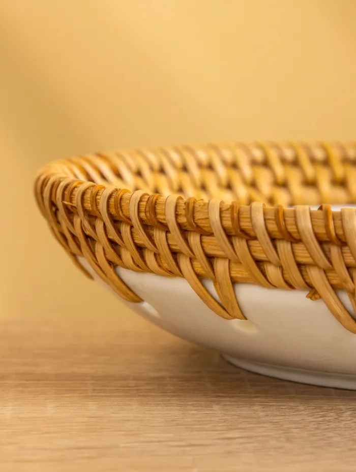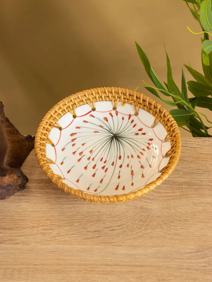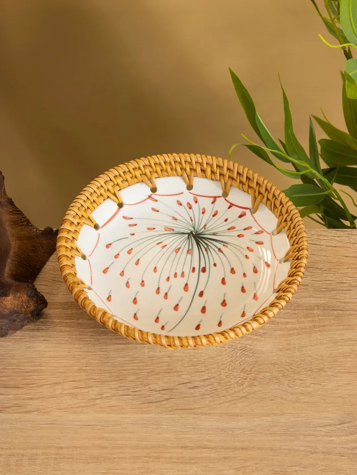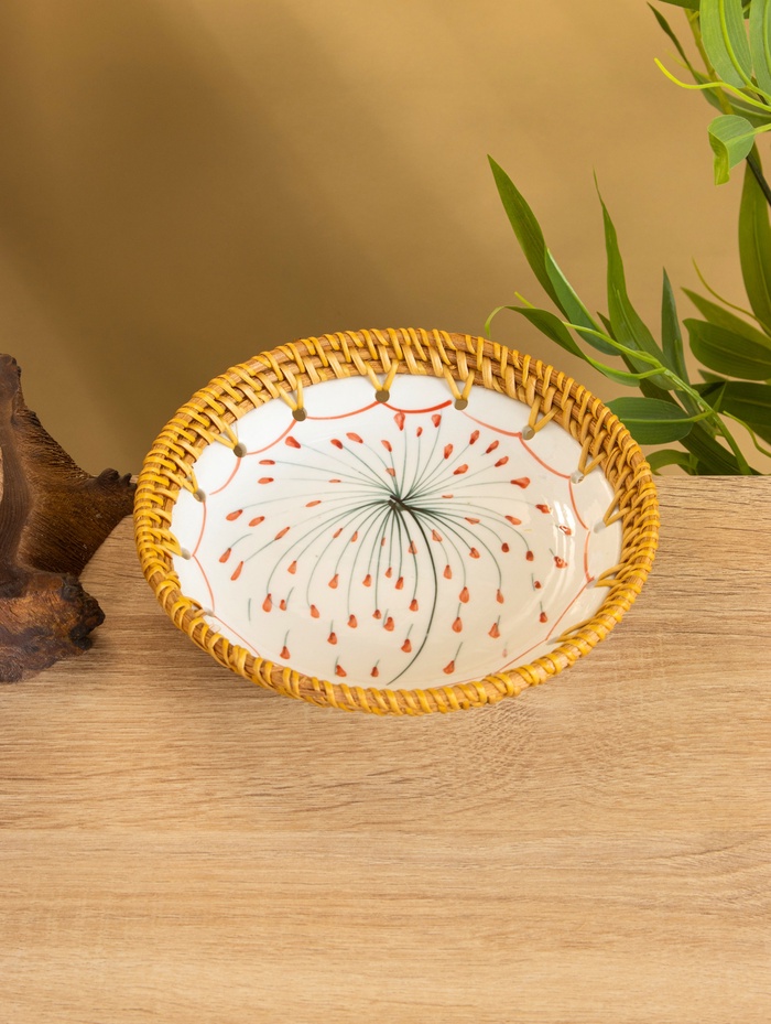 Тарелка керамическая с ротангом, 18×18×3.7 см, МИКС — Характеристики