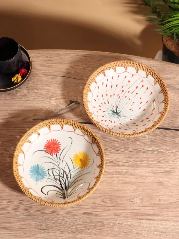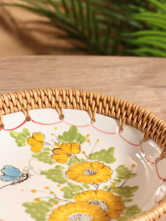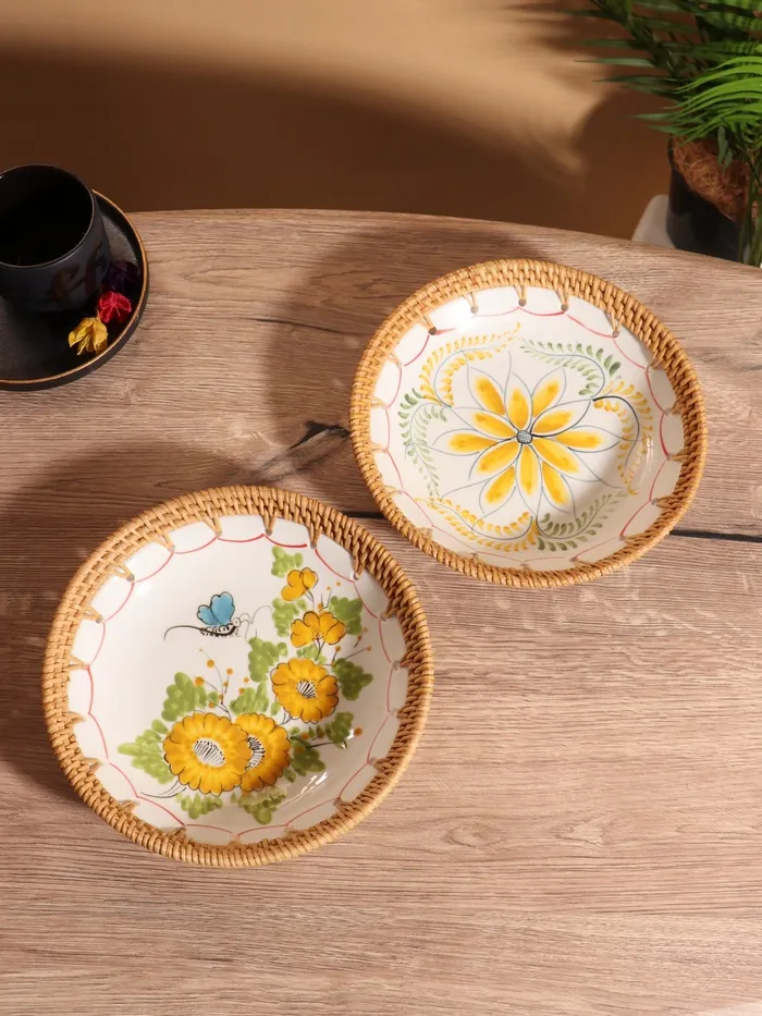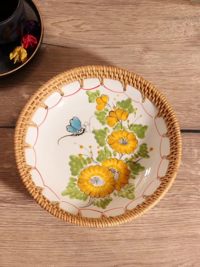 Тарелка керамическая с ротангом 22х22х4,7 см, МИКС — Характеристики