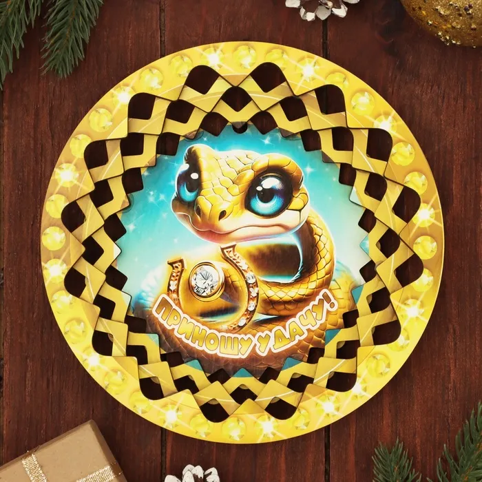 Тарелка - конфетница деревянная «Символ года 2025. Приношу удачу» — Характеристики