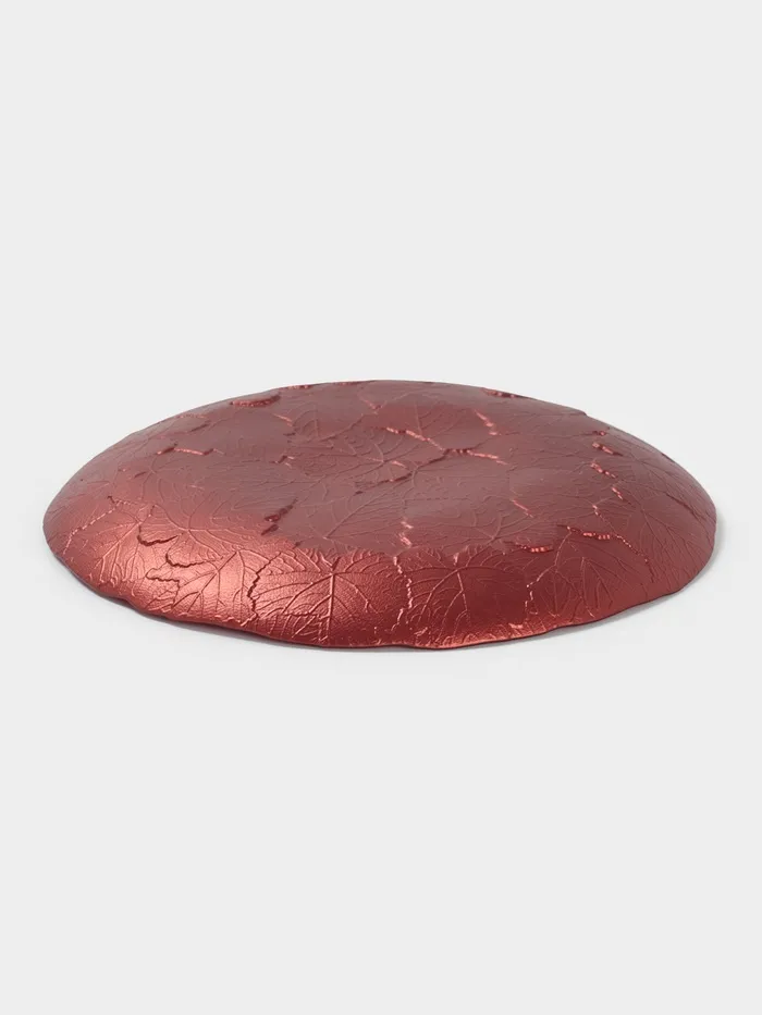 Красная стеклянная тарелка с растительным узором — это смелая подача, где цвет и тема работают вместе. Глубокий красный оттенок напоминает спелые ягоды, листья в увядании, тёплый свет заката — ассоциации с поздней осенью возникают сами.