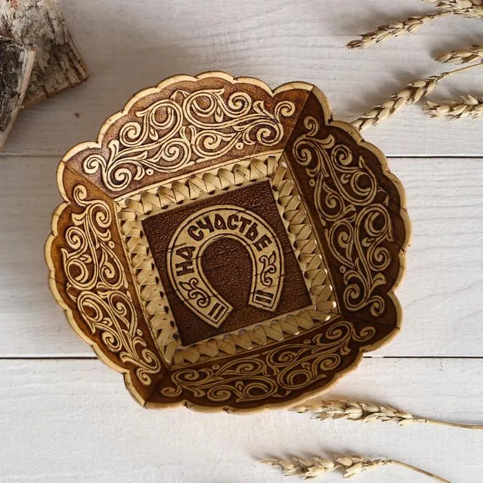 Тарелка квадратная «На счастье», конфетница, 15.5×4.5 см, береста — Характеристики