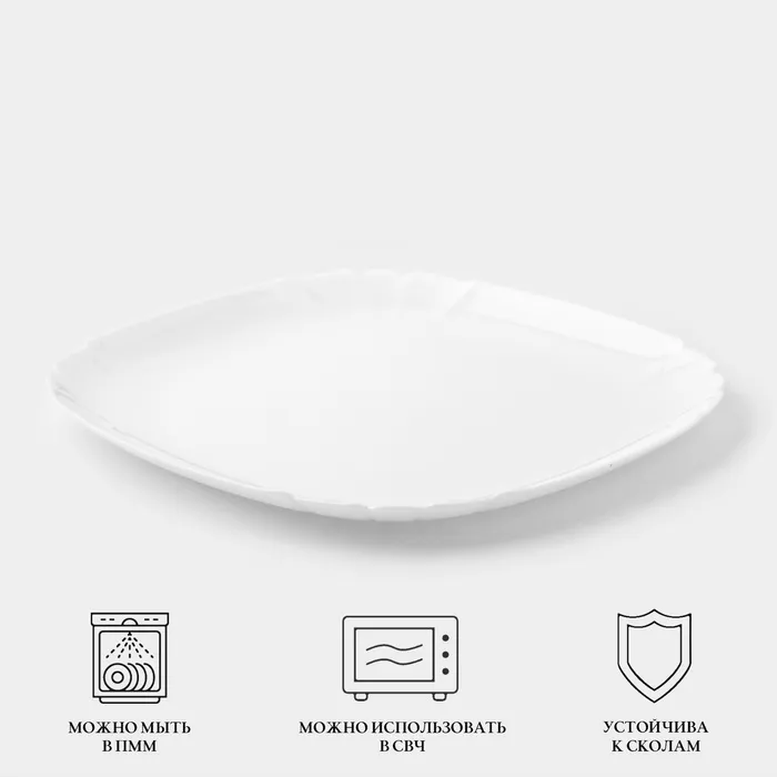 - Классический белый цвет и гладкая поверхность придают тарелке элегантный вид.