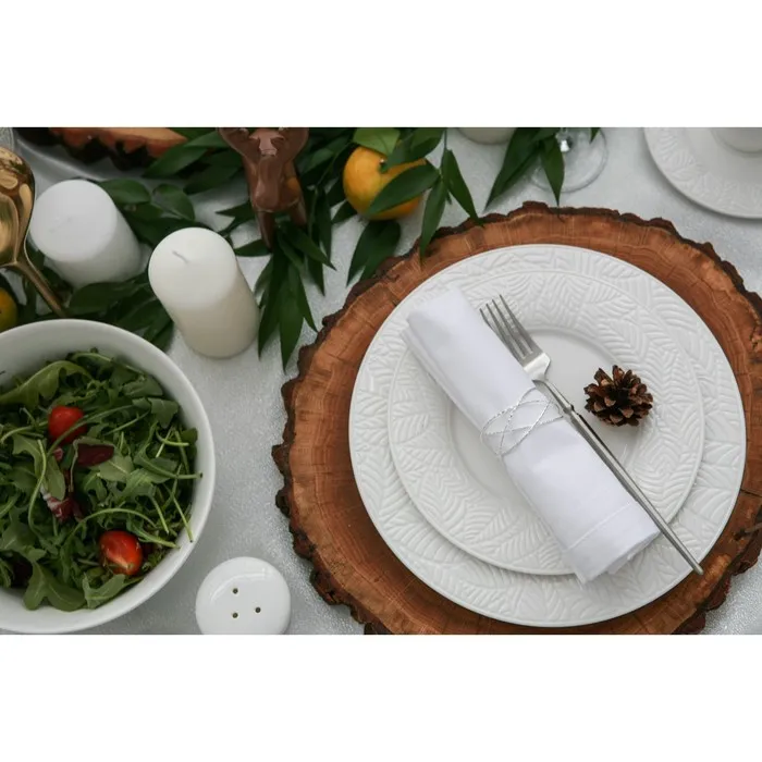 Посуда Magistro серии Crotone – это безупречно изящная коллекция посуды из белоснежного фарфора, достойная украсить даже королевский стол. Традиционная форма изделий остается всегда актуальной и выглядит благородно. Рельефный узор в виде листьев выглядит особенно утончённо и придает посуде индивидуальности. Благодаря высокой прочности, фарфор надолго сохраняет свою новизну, не боится высоких температур, его можно использовать в микроволновой печи и мыть в посудомоечной машине.