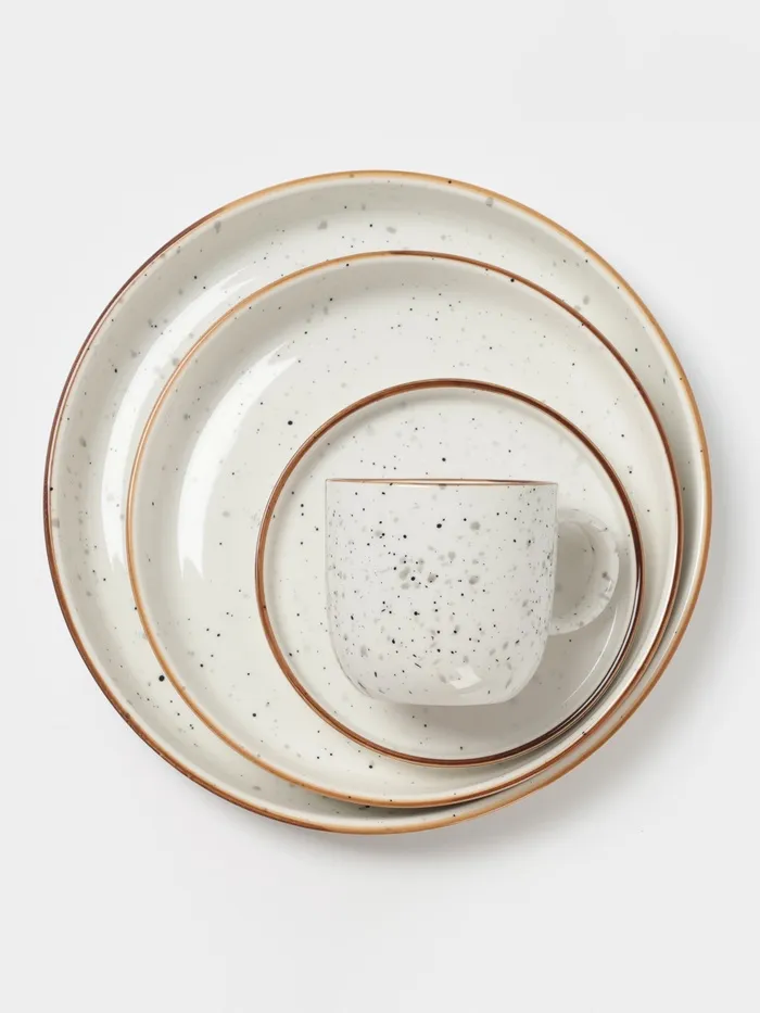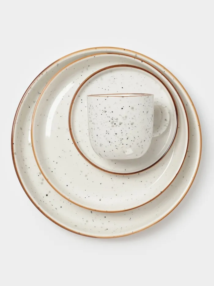Фарфоровая обеденная тарелка с крапинкой — основа элегантной сервировки. Диаметр 27,7 см идеально подходит для подачи вторых блюд, создавая достаточно пространства для красивой компоновки ингредиентов. Белоснежный фон с деликатными точками добавляет столовой сервировке лёгкую игривость.