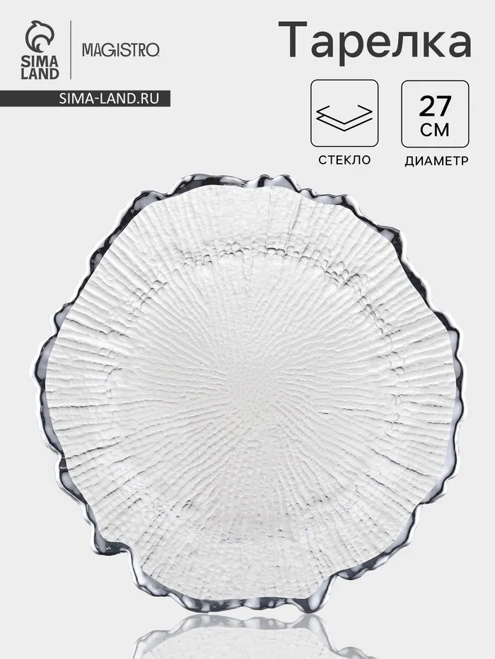 Тарелка Magistro «Сияние», d=27 см, серебристая отводка, стекло, прозрачная — Характеристики
